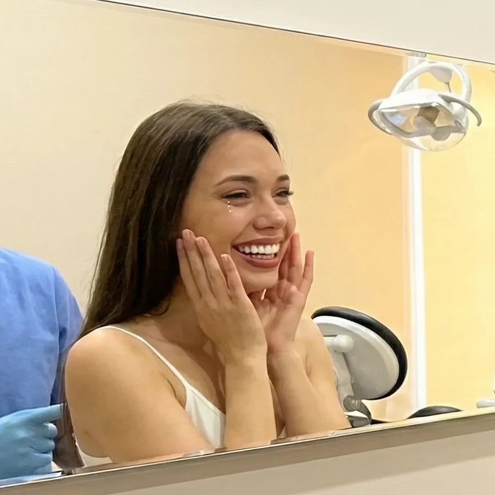 - La etapa más emotiva del diagnóstico. Transferimos el diseño digital a tu boca utilizando un material provisional. Te acercas al espejo y te ves con tus nuevos dientes: puedes sonreír, hablar y asegurarte de que te gustan la forma y la longitud