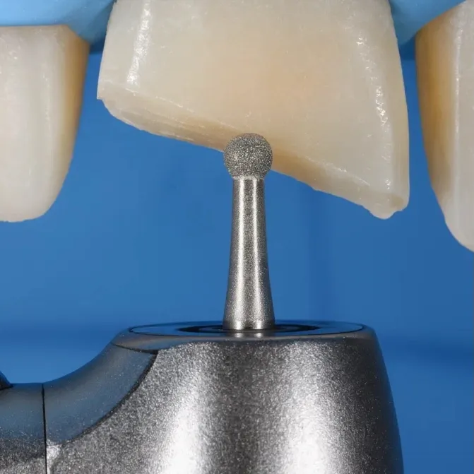 Seguimos el concepto de mínima intervención. Las carillas de cerámica modernas son ultrafinas (0,3–0,5 mm, como una lente de contacto), por lo que el tallado del diente es mínimo; a menudo trabajamos solo a nivel del esmalte. El diente permanece vivo y fuerte.